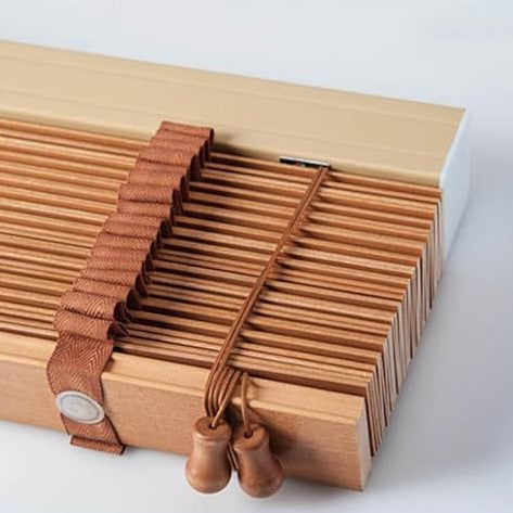 Su fácil manejo permite ajustar fácilmente la entrada de luz y la privacidad, brindándote la flexibilidad que necesitas en cada momento del día. E acabado en madera realza la estética natural de tus ventanas.