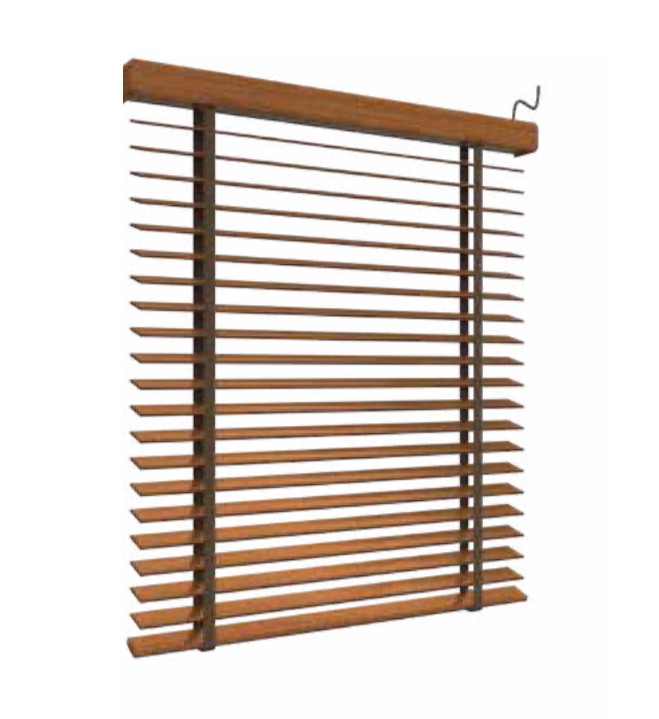 H-M25 es nuestra línea de venecianas de madera con lamas horizontales de 25mm, fabricadas en madera Abachiwood.